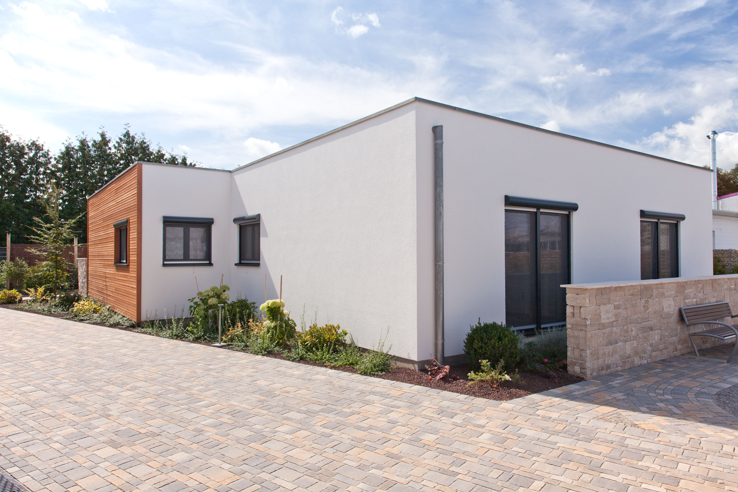 Winkelbungalows bieten dabei besondere Vorzüge: Sie schaffen natürlich abgegrenzte Bereiche für Wohnen und Schlafen, ohne auf zusätzliche Wände angewiesen zu sein. Die L-Form ermöglicht zudem geschützte Außenbereiche für Ihre Terrasse.