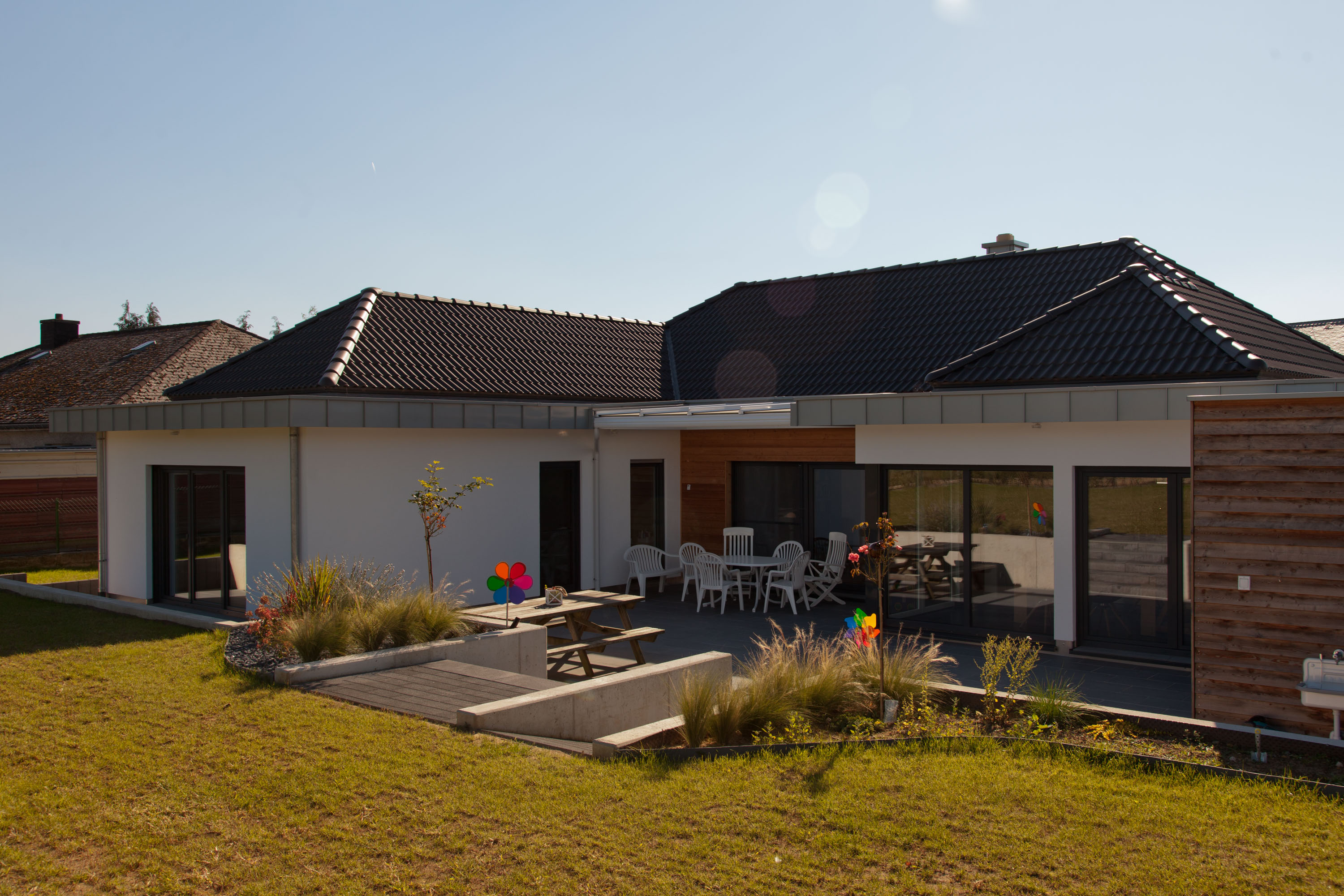 Die eingeschossige Bauweise eines Bungalows eliminiert Treppen und schafft damit einen barrierefreien Wohnraum, der besonders für ältere Menschen und Familien mit kleinen Kindern vorteilhaft ist.