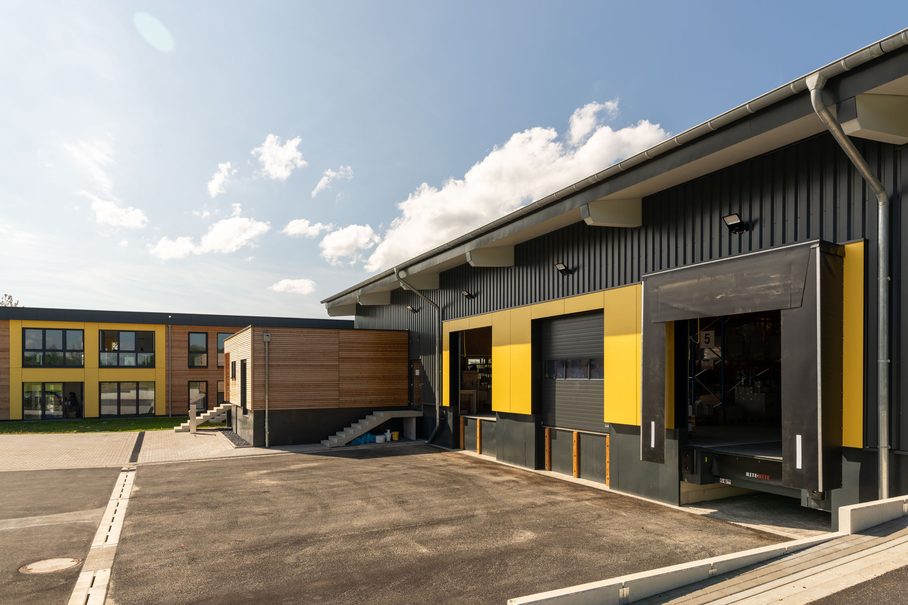 Dieses moderne Bürogebäude mit angrenzender Lagerhalle ist speziell für ein innovatives Kosmetikunternehmen gestaltet. Die Fassade kombiniert elegant die natürliche Ästhetik von Trendliner Lärchenschalung mit hochwertigen Fundermax Fassadenplatten, wodurch ein zeitgemäßes und ansprechendes Äußeres entsteht. Im Herzen des Gebäudes befindet sich ein stilvoller Kosmetikshop, der Kunden einlädt, die neuesten Beauty-Trends zu entdecken. Die Kombination aus einer funktionalen Lagerhalle und einem eleganten Büro- und Verkaufsbereich bildet das Zentrum dieses Konzepts, das Effizienz mit modernem Design vereint.